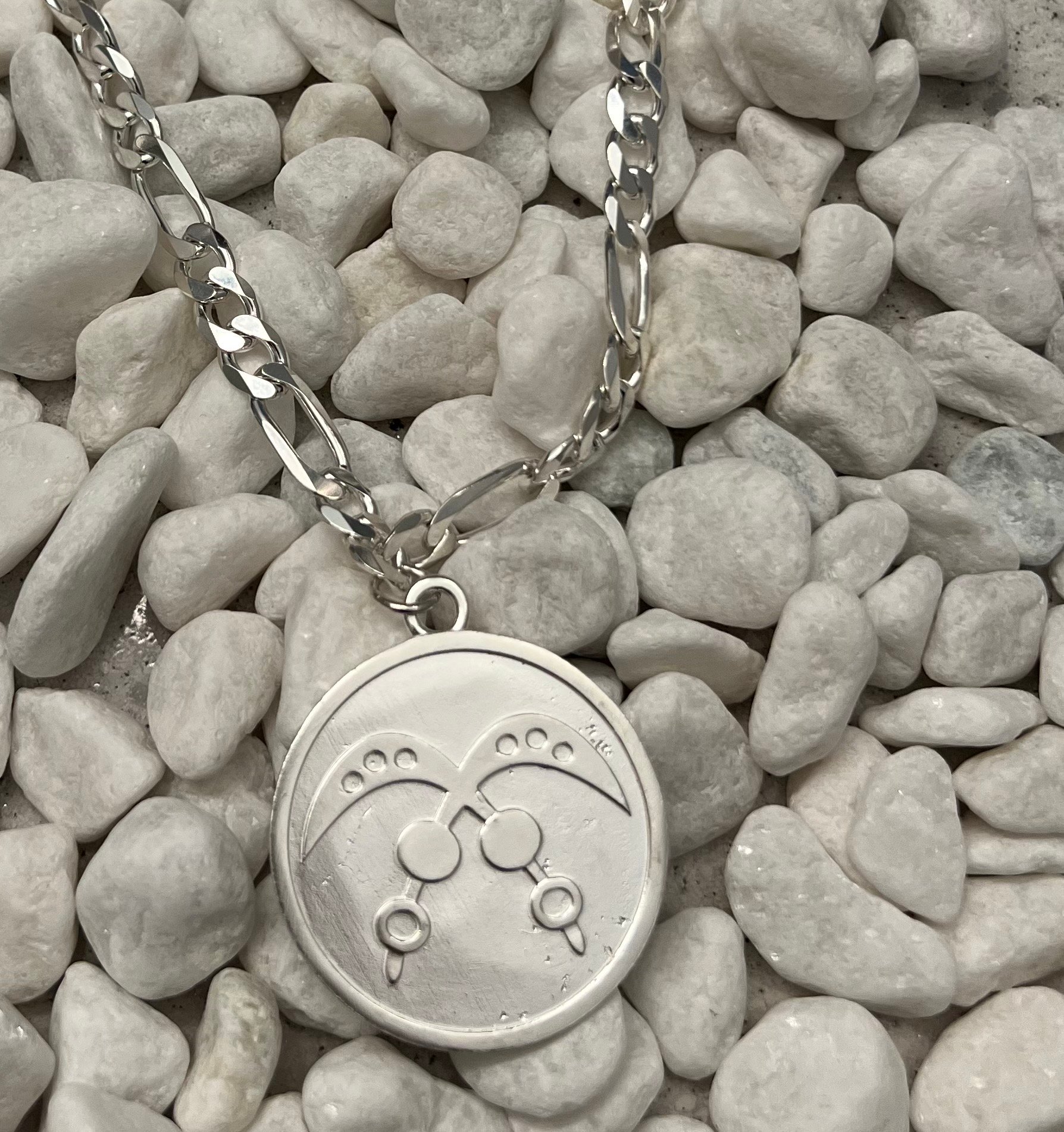 - 24" or 26" Figaro chain, 9mm thickness - 1 Akofena medallion (meaning: valor and courage) - Metal: 925 Sterling Silver